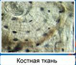 Рис. 16. Костная ткань образована живыми клетками с длинными отростками, соединенными между собой. Межклеточное вещество твердое, состоит из неорганических солей и белка оссеина. Костная ткань выполняет опорную и защитную функции.