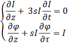 Решаем первое уравнение: общее решение записывается в виде I(z,τ)=f(τ-3sIz). Уравнение можно решить методом характеристик. Суть метода заключается в том, что каждая временная точка τ движется вдоль прямой линии от начального значения и наклон этой линии зависит от интенсивности, где I(0,z)=f(z).