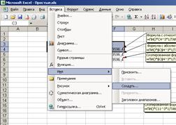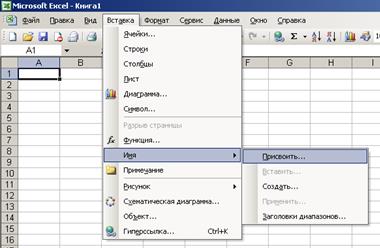 Ячейкам можно дать имена и затем использовать имена в формулах. Для задания имён существует несколько способов: Через меню: «Вставка»à «Имя»à «Присвоить»