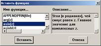 Чтобы ввести встроенную функцию в выражение: определите место в выражении, куда следует вставить функцию, нажмите кнопку с надписью f(x) на панели инструментов и имя встроенной функции.