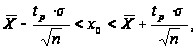 Эта вероятность называется доверительной вероятностью, а интервал – доверительным интервалом. Доверительный интервал измеряемого параметра x0 приближенно находится по формуле