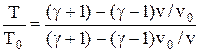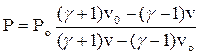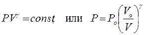 Адиабата Гюгонио. Полученные выражения и уравнение термодинамического состояния газа, связывающее между собой значения T, P и v, позволяют описать ударное сжатие от Po, vo до P, v кривой в координатах P – v, которая называется адиабатой (сжатие происходит без теплообмена) Гюгонио. Величины исходных давления и удельного объема, имеющие особое значение, содержатся в уравнении адиабаты Гюгонио в качестве параметров. Закономерности сжатия в ударной волне принципиально отличаются от закономерностей изоэнтропического сжатия, описываемого адиабатой Пуас-сона: