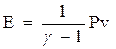 В предположении Е = cvT, и учитывая, что cp/cv = g, ср – cv = R/M (M – молекулярная масса), а RT = РvM, найдем