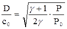 Таким образом, при сильном сжатии рост давления в ударной волне пропорционален квадрату скорости сжимающего тела (поршня). Не только очень сильные, но и очень слабые ударные волны отличаются рядом особенностей. Ударное сжатие очень малой амплитуды эквивалентно сжатию в звуковой волне. В этом случае D = со, где со – скорость звука в ве-ществе, находящемся в исходном состоянии. В этом случае разности Р–Ро=ΔР и vо–v=Δv можно заменить дифференциалами, аналогичные суммы – величи-нами 2Р и 2v либо 2Ро и 2v0 соответственно. Уравнение (8.4) принимает вид: