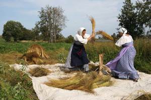 Когда лён созревал, его собирали в снопы и сушили.