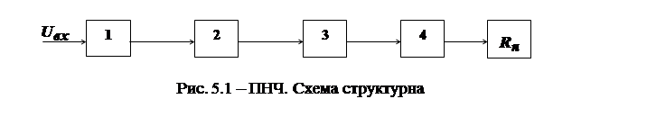 Вибираємо значення m найближче до більшого цілого, тобто m = 4. Структурна схема ПНЧ наведена на рис. 5.1, де цифрами 1-3 позначено каскади попереднього підсилення, а цифрою 4 – вихідний (кінцевий) каскад.