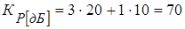 Оскільки безтрансформаторні кінцеві каскади найчастіше будуються на основі каскадів з СК, що не мають підсилення за напругою, то можна вважати величину їх підсилення за потужністю рівною 10 дБ. У такому разі підсилення чотирикаскадної схеми складає: