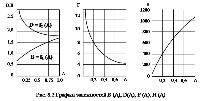 Rф = 8,17 + 1,0 = 9,17 Ом; 8.5.3.2 За графіками (рис. 8.2) знаходимо коефіцієнти В, D, F і Н, які відповідають розрахунковому значенню А: В = 0,9; D = 2,3; F = 8,0; Н = 320. (8.5) 8.5.3.3 Знаходимо діюче значення вторинної обмотки трансформатора: U 2 = В × Ud = 0,9 × 24,5 = 22,05 В. (8.6) 8.5.3.4 Визначаємо коефіцієнт трансформації трансформатора: