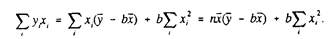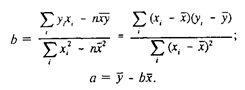 Если уравнение (3) разделить на n, то получим у=а+bх (здесь - средние значения х и у). Таким образом, линия регрессии проходит через точку со средними значениями х и у. Подставив величину а из (3) в (4), получаем