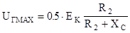 7.Собрать схему, убедиться, что фактические значения токов покоя базы и коллектора совпадают с расчетными. 8.Расчитать значение конденсатора на входе и выходе, сопротивление которого на частоте исследуемого сигнала 10 кГц будет составлять от 1 до 20 Ом. 9. При полученных значениях R2 и XС определить амплитуду входного напряжения усилительного каскада, которое будет усиливаться без искажений. При расчете использовать соотношение