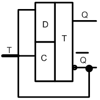 Рис. 5. Т-триггер, на основе D-триггера.