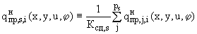 где - значение суммарной приземной концентрации -го (в долях , аналогично (6.4а) и (6.4б) в п.6.2.1.), создаваемое выбросами этого из предприятия при нормативных значениях их параметров при -м режиме выбросов предприятия в точке местности ( , ) при скорости ветра и его направлении ;