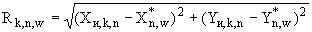 П.2.2.8. В ходе организации расчетов площадок будем использовать также минимальное и максимальное расстояния, и от точек ( , ) до границы области взаимовлияния площадок рассматриваемой группы , определенные для каждого, -гo, набора и групп комбинирующихся , выбрасываемых каждой, -й, площадкой, как: