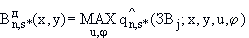 П.4.2. Значение предельно допустимого поля для определяющей группы суммации в точках множества (см. п.П.2.3.) рассчитывается как наибольшее по скоростям и направлениям ветра значение функции в каждой точке: