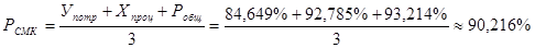 Комплексная оценка результативности СМК (РСМК) будет рассчитана из полученных оценок результативности процессов, удовлетворённости потребителей и совершенствования СМК: