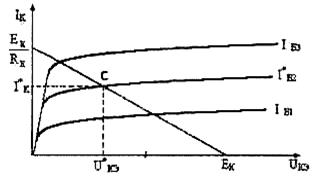 Графоаналитический метод расчета и исследование параметров рабочей точки в транзисторных каскадах представляет собой метод, основанный на непосредственном использовании ВАХ транзистора, представленных в графическом виде. Например, для схемы транзисторного каскада с ОЭ (рисунок 9) семейство входных ВАХ представляет собой зависимость тока