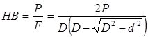 Здесь НВ – обозначение твердости; Р – прилагаемая нагрузка [ кгс ]; F – площадь поверхности отпечатка [ мм2 ]; D и d – соответственно, диаметры шарика–индентора и отпечатка [ мм ] (рис.1). Таким образом, размерность значений твердости – Диаметр шарика и нагрузку выбирают так, чтобы соблюдалось соотношение