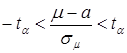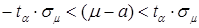 где k – число степеней свободы системы (т.е. то количество значений признака, которые могут принять произвольные значения, не изменяя общего уровня, около которого эти значения варьируют). В нашем случае имеем n значений переменной, из них произвольно мы можем назначить n –1 значения с тем, чтобы сохранить величины m и s нашей выборки. Таким образом, Вероятность того, что t не превзойдет некоторого числа t a, т.е. лежит в интервале