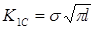 где s – разрушающее напряжение, которое следует учитывать в прочностных расчетах, при известной длине трещины l. Таким образом размерность коэффициента – К1С является характеристикой материла и зависит только от его свойств: