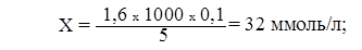 де: 1,8 – ІІ позначка, 2,4 – ІІІ позначка, (1,8 +2,4/ 2) – середнє арифметичне значення, 1000 – перерахунок на 1 літр, 0,1 – кількість мг екв лугу в 1 мл 0,1 н розчину, 5 – кількість шлункового соку, яка взята для титрування (мл).