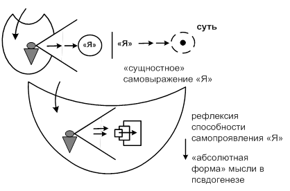 Схема 17 23. Оставаясь в акцентировке на «чистой мысли», дающей «истинное знание», т.е. в зоне «чистого разума», Гегель не только ввел рефлексивное знание о «Я», но и его высшем проявлении, в котором «Я» преодолевает ограничения конкретного познающего, в котором «Я» может оказывать «самодвижение» сути самой по себе. Более того, оперируя диалектикой, динамикой отношений «формы» и «морфологии» в мышлении в показе развития, пути исчерпывания сути познаваемого в псевдогенетической форме, Гегель создал «абсолютный метод», великое достижение философии, как предшествование высшей мыслетехники в методологии (см. сх. 18):