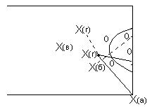 5. Игрок на мяче Х(а) отдаёт передачу Х(б), тот делает ему возврат, затем игрок Х(а) делает прострел между защитниками, куда врывается партнёр Х(г) – удар.