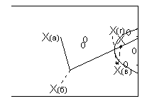 3. Игрок Х(а) смотрит на партнёров Х(в), Х(г), которые одновременно разбегаются поперёк ворот, тем самым закрывая видимость вратарю, а так же блокируя защитников соперника, фактически одновременно отдаёт передачу партнёру Х(б) под удар.