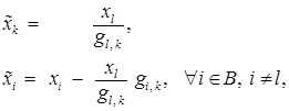 6._Построение нового базиса 7._Пересчет симплексной таблицы по формулам (1) – (4). 8._ Переход к следующей итерации, к первому ее этапу.