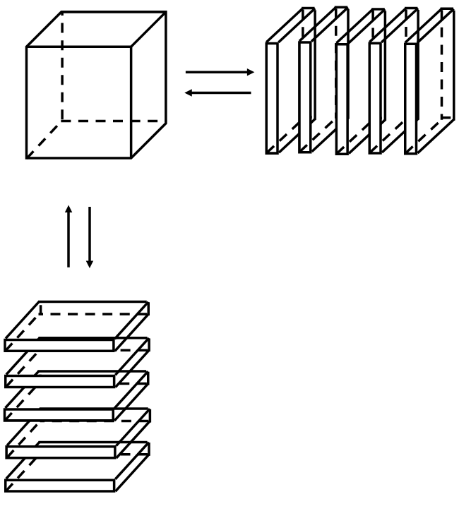 Работа по схеме выполняется как самостоятельно, так и в паре с Учителем (в этом случае Ученик сидит, спина прямая, ноги раздвинуты на 10-15 см, руки лежат на коленях ладонями вверх). На рисунке слева – кубик. Рядом – он же, разделенный на горизонтальные слои. Внизу – тот же кубик, разделенный на вертикальные слои. Вместо кубика ставим любой не полый орган. Головной мозг, спинной мозг, глаз и т.д. Сердце не трогаем. Переносим с себя или партнера (предварительно контактируем с его полем) полевую структуру сначала на целый кубик, затем на кубики, нарезанные слоями. Проводим таким образом диагностику состояния органа по его отдельным слоям. Например, левый кубик – головной мозг. Правый кубик – головной мозг послойно: верхний слой – сканируем уровень, его энергетическое состояние; следующий слой и так далее. То же самое с вертикальными слоями. Это очень точная диагностика. Водим по слою, и палец цепляется за места, где энергетика отличается от уравновешенного состояния. Ее либо меньше, либо больше. Можно посмотреть в анатомическом атласе, с чем связаны патологические слои. После диагностики мы гармонизируем состояние поля в органе, с которым работаем, водя над кубиками ладонью по часовой стрелке. Заканчиваем работу трехкратным вращением против часовой стрелки, снимая, таким образом, со схемы информацию о партнере и об определенном органе. Каждое возникшее ощущение обязательно фиксировать чёткой командой «Есть!» Рекомендации: • В целом, упражнение рекомендуется выполнять 5-10 минут. • Можно диагностировать-корректировать работу отдельных частей или всю систему целиком. • Ощущение над кубиком будет отличаться от ощущения поля партнера, потому что сюда вы переносите развертку идеи нервной системы, а не поля человека в целом. Это будет ощущение, вычлененное из общего. • Можно не снимать со схемы ощущения после каждого выполнения процедуры. Схему надо подписать и периодически с ней работать. • Если ощущения не развиты, просто дайте себе установку, скомандуйте «Работаю с тем-то», и эффект пойдет в любом случае. Единственное – оценить прогресс будет сложно. • Процедуру надо проводить регулярно, каждый раз возобновляя сигнал гармонизации в мозге человека. Противопоказания: • Если чувствуете себя плохо, не заниматься. • По схеме можно работать с любым человеком, независимо от того, знает он об этом или нет. По схеме работать безопасно.