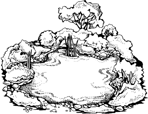 Миксбордером называется цветник вытянутой формы со смешанными растениями. Как правило, в него высаживают однолетние и многолетние травянистые растения. Редко дополняют его кустарни ками, лианами или де ревьями. Массив – цветник, площадь которого более 20 м2. При его создании используют одно– и многолетние луковичные цветы. Цветочные массивы располагают обычно около больших вилл и коттеджей. Солитерные посадки – это ухоженные газоны с одиночными цветами. Водный цветник – это водоем с цветами. Если на берегах водоема расположить еще несколько растений, то получится прекрасный оазис (рис. 1). Рядом с таким цветником часто устанавливают скамейки и шезлонги. Это романтичное место для отдыха.