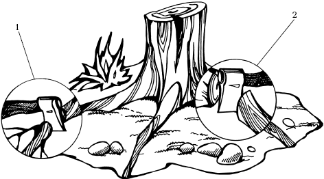 Рисунок 91. Схема выкорчевывания пня: 1 – правильно; 2 – неправильно