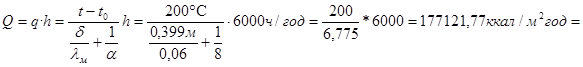 Годовые потери тепловой энергии через 1 мІ поверхности изоляции рассчитываются по уравнению, Гкал/(м2·год):