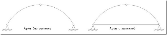 Рисунок 2 - Арка без затяжки и с затяжкой Затяжки изготовливают в большинстве случаев из арматуры или профильной стали. Возможно применение деревянных клееных затяжек, в условиях химически агрессивных сред, где металл будет корродировать.