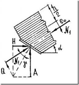 Рисунок 9 – Силовые воздействия в опорном узле арки Наибольшие продольные силы возникают в сечениях близ опор, а наибольшие поперечные силы – в сечениях близ шарниров. Усилия в подвесках затяжек возникают от подвешенных к ним грузов и от собственной массы затяжек. Подбор сечений и проверка напряжений производятся по максимальным значениям расчетных усилий. При этом ветровые нагрузки учитываются только в тех случаях, если ветер более чем на 20 % увеличивает расчетные усилия. Арки работают и рассчитываются на сжатие с изгибом по прочности и устойчивости в плоскости и из плоскости арки. Подбор сечений производится методом попыток по величине изгибающего момента при условно пониженном, например, до 0.8 Ru расчетном сопротивлении древесины изгибу. При расчете арок выполняются следующие проверки 1. Проверка прочности по нормальным напряжениям: