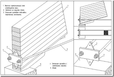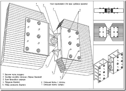 Рисунок 13 – Опорный узел с металлической затяжкой Опорный узел сегментной арки с деревянной затяжкой на болтах: