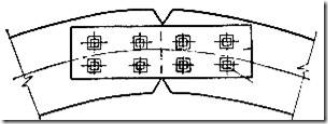 Рисунок 18 – Стальной шарнир качающегося типа Стыки элементов арок. Стыки клееных арок представляют собой зубчатые соединения досок по длине и стыки по пласти слоев досок между собой. Арки больших пролетов соединяются по длине жесткими стыками с помощью двусторонних накладок из профильной стали и болтов. Эти стыки рассчитываются на усилия, действующие в данном сечении арки.