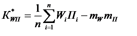 Взаимнокорреляционный момент и коэффициент корреляции случайных величин выпуска продукции П и расхода электроэнергии W можно определить по формулам: