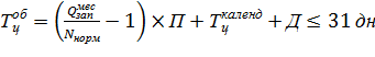 где Тцоб- общая длительность производственного цикла обработки всей программы по запуску деталей каждого наименования в течение месяца, календ.дн; А- число партий, запускаемых в течение месяца (определяется путем деления программы по запуску деталей каждого наименования на нормативный размер партии деталей); П – периодичность запуска партий деталей, дн; Тц- длительность производственного цикла партии деталей, дн.; Д- число выходных и праздничных дней в месяце.