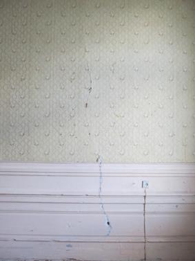 Вертикальная трещина в стене, шириной раскрытия до 2 мм.