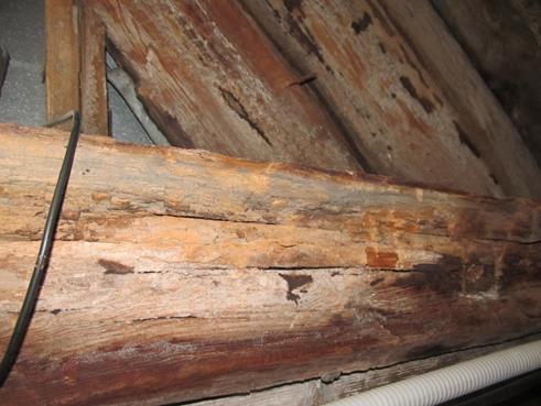 Деревянные элементы стропильной системы, пораженные гнилью.