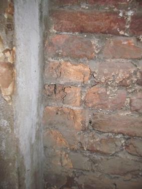 Деструкция кирпичной кладки, на глубину до 2 см.