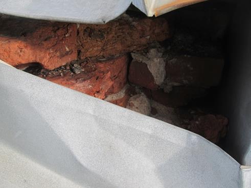 Деструкция кирпичной кладки, выпадение отдельных кирпичей.