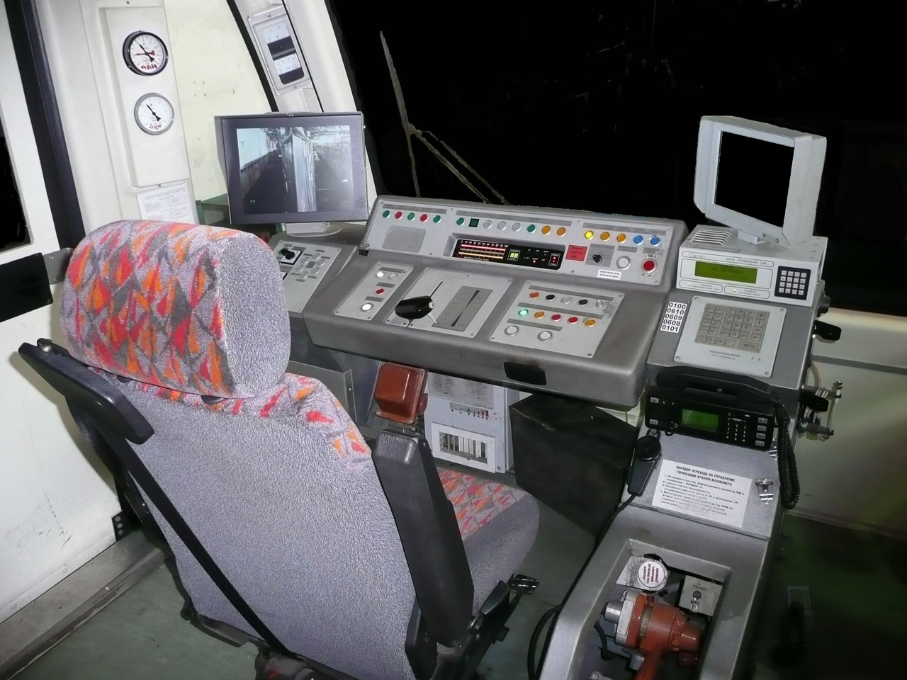 Машинист проверяет кнопки "Восприятие торможения", "Бдительность", "Подъём".