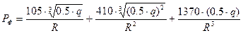 где: ∆РФ — избыточное давление во фронте ударной волны, кПа; q.— тротиловый эквивалент ядерного взрыва по ударной волне, кг; R — расстояние от центра взрыва, м.