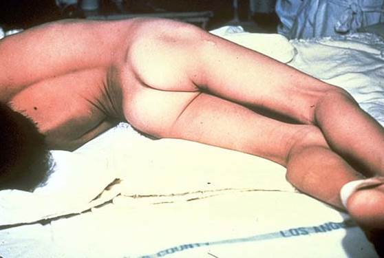 Анаэробная инфекция огнестрельных ранений Анаэробная инфекция возникает у 1-2% раненых, вызывается микробами из рода Clostridium (cl.perfringens, cl. septicum, cl.oedematiens, cl.histoliticum). Факторами, способствующими развитию анаэробной инфекции, являются массивные загрязнения обширных ран землей; нарушение кровоснабжения раненой конечности; местный сосудистый спазм, развивающийся в результате травмы; сдавление конечности жгутом; травматический шок; кровопотеря. Анаэробная инфекция чаще возникает в первые 5-7 дней, однако может развиваться и в более поздние сроки. Профилактика анаэробной инфекции заключается в выполнении всех тех мероприятий, которые проводятся для профилактики и гнойной инфекции. Успешное лечение обеспечивается ранней диагностикой, так как инфекционный процесс характеризуется чрезвычайно быстрым распространением. Такие формы называют молниеносной гангреной. Еще до снятия повязок одним из симптомов анаэробной инфекции является усиливающаяся боль в ране распирающего характера. Раненые могут быть возбуждены, пульс учащается до 100-120 уд. в мин., температура тела от 37,5 до 37,8. Можно наблюдать отек, распространяющийся выше повязки, при ощупывании определяется крепитация, при перкуссии – тимпанит. Наличие этих симптомов не оставляет сомнений в диагнозе, так как они возникают в результате образования и распространения газа по тканям. Раненых с анаэробной инфекцией на этапе первой врачебной помощи практически не бывает. Они могут появиться на этапе квалифицированной, а чаще всего - специализированной хирургической помощи. Лечение проводится в условиях строгой изоляции, что достигается размещением их в так называемых анаэробных палатках (квалифицированная помощь) или боксированной палатке (специализированная помощь), где им проводится оперативное и консервативное лечение. Оперативное лечение – хирургическая обработка раны осуществляется под общим обезболиванием. В зависимости от выраженности морфологических изменений и распространенности процесса хирургическая обработка может завершиться «лампасными разрезами», ампутацией сегмента или всей конечности. Раненые нуждаются в интенсивной трансфузионно-инфузионной терапии на уровне реанимационного пособия с элементами дыхательной, а иногда и сердечной реанимации. Раненые становятся транспортабельными только после ликвидации признаков анаэробной инфекции. Столбняк. Тяжелое, хотя и относительно редкое инфекционное осложнение ранений военного времени. Летальность достигает в годы войны 75%. Возбудитель заболевания – столбнячная палочка (Cl.tetani) очень широко распространена в природе. Основные фракции столбнячного токсина – тетаноспазмин, который блокирует функцию клеток Гэншоу, что приводит к возникновению судорог и тетанолизин, который по своей ферментативной активности и агрессии напоминает гиалуронидазу-фермент, разрушающий межклеточную основу – гиалуроновую кислоту. Отсюда повышенная прницаемость гематоэнцефалического барьера для тетаноспазмина, гемолиз эритроцитов, токсический миокардит, токсический гепатит и т.д. Профилактика столбняка подразделяется на специфическую и неспецифическую. Стойкий иммунитет достигается трехкратным введением столбнячного анатоксина (по 0,5 мл) с интервалом 1,5 месяца между первой и второй прививками и 9-12 мес. – между второй и