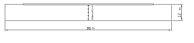Место строительства г.Горький. Пролёт 12 м, длина пролёта 96 м, высота пролёта 10,8м. Коэффициент отражения потолка ρ1 = 0,7; стен ρ2 = 0,4; пола ρ3 = 0,15. Затемнение противоположными зданиями отсутствует.