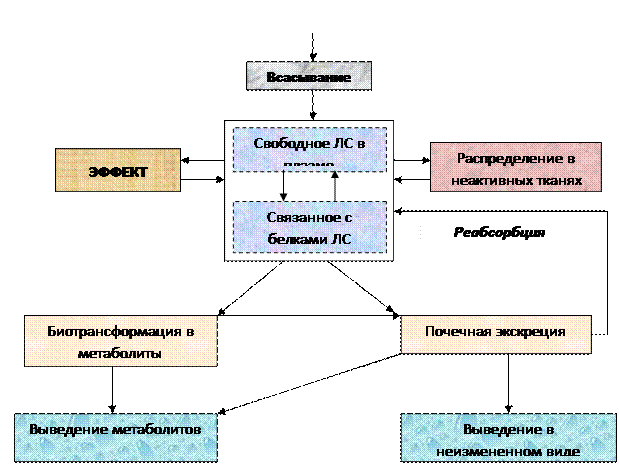 Рисунок 1. Фармакокинетические процессы лекарственных средств в организме