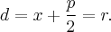 Утверждение. Пусть Доказательство. Действительно, Упражнение. Доказать, что справедливо обратное утверждение: геометрическое место точек, расстояния от которых до фиксированной точки и фиксированной прямой уровне, является параболой. Пример. Написать уравнение параболы, если известны ее фокус 1 способ с использованием канонического уравнения. Директриса перпендикулярна оси симметрии параболы, фокус находится на оси симметрии справа от директрисы. Итак ось симметрии параболы Расстояние между фокусом и директрисой равна фокальному параметра
