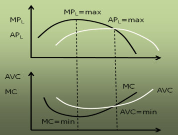 Рис. Кривые продукта и кривые издержек от переменного фактора