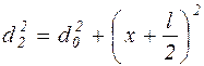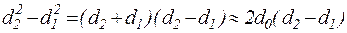 Рис. 7.1. Рассмотрим интерференционную картину на экране Э, отстоящем на расстоянии d0 от линии S1S2, в точке А. Обозначим расстояние от точек S1 и S2 до точки А через d1 и d2, и расстояние ОА через x. Характер интерференционной картины в точке А определяется оптической разностью хода лучей D=d1-d2. Найдём D. Из треугольников S1A1A и S2AA2 имеем: